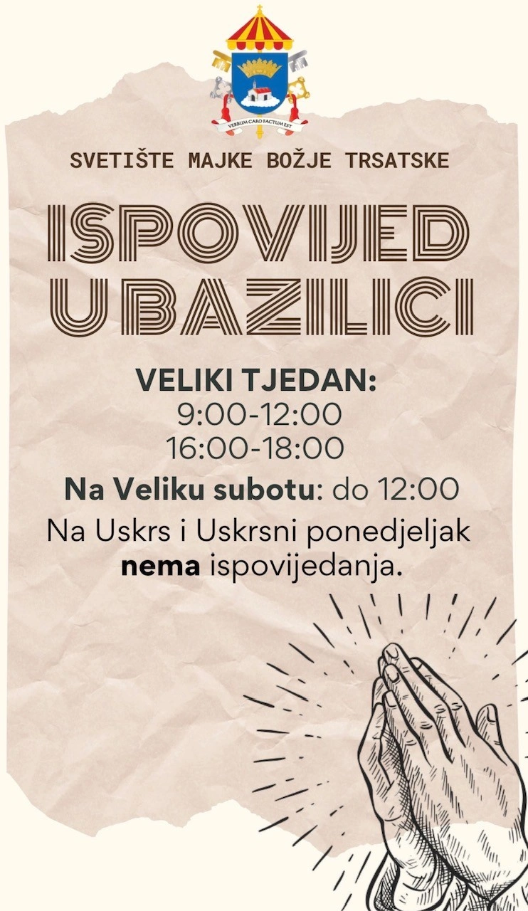Podsjetnik na vrijeme ispovijedanja u svetištu na Trsatu.