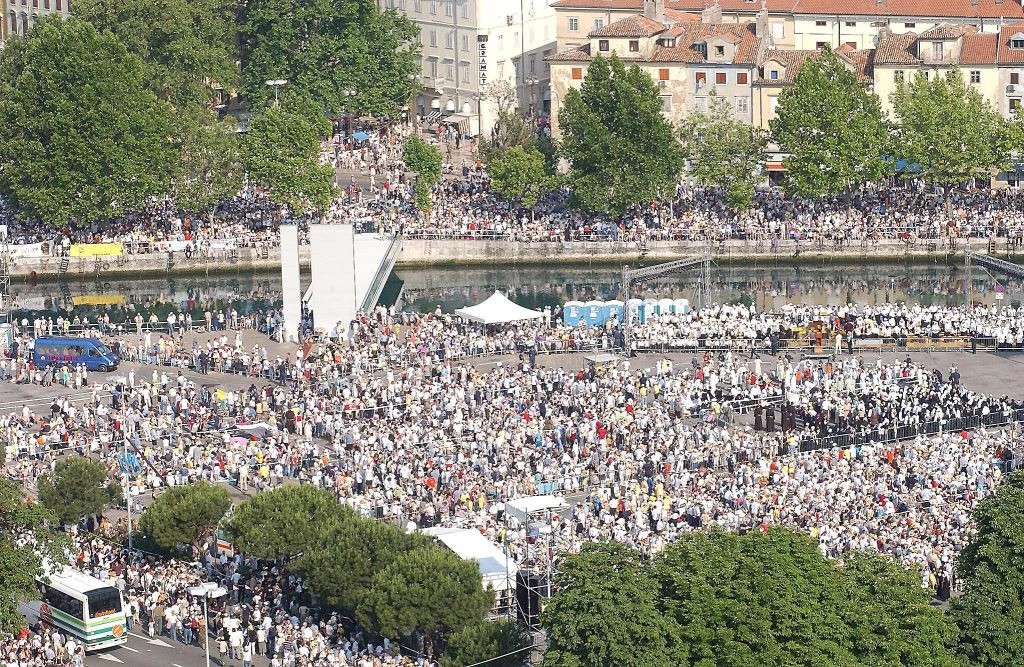 Sveti papa Ivan Pavao II. na Trsatu u molitvi kod Majke Božje Trsatske, blagdan Duhova, 8. lipnja 2003. godine