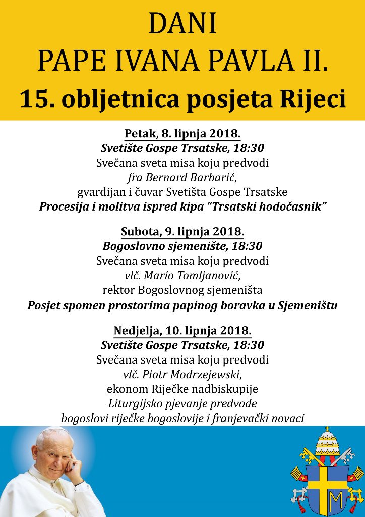 Stoga ćemo od 8. do 10. lipnja obilježiti Papine dane u zajedništvu s Riječkom bogoslovijom, gdje je papa boravio za svoga trećega pastirskoga pohoda.